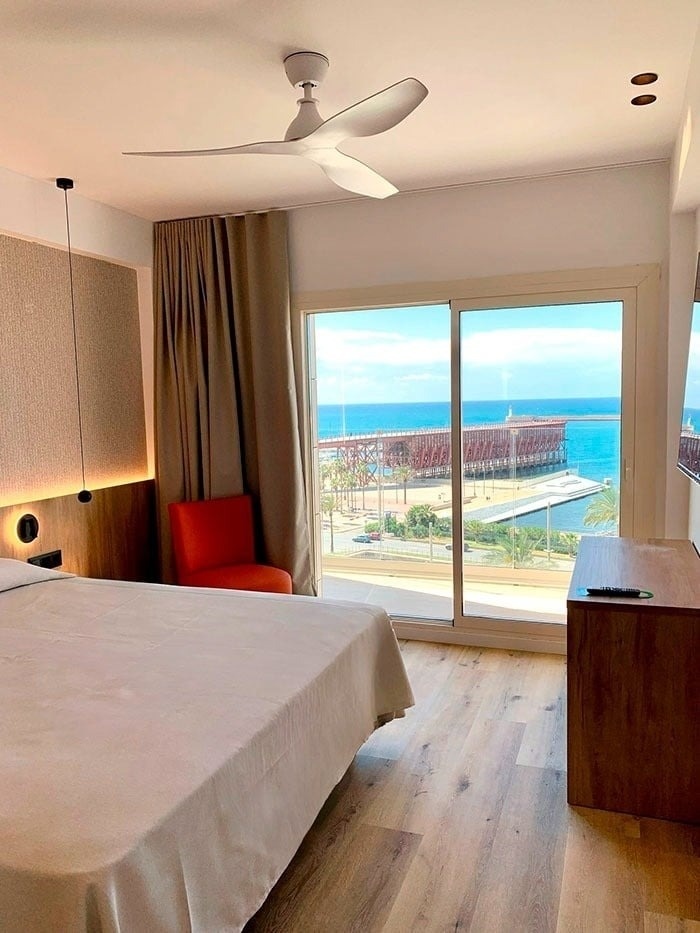 Descubra la tranquilidad y el confort de nuestras habitaciones con vistas al mar Mediterráneo, equipadas con una amplia cama de matrimonio de 1,80cm o dos camas de 1,05cm, baño completo con ducha y una agradable terraza para contemplar las vistas.